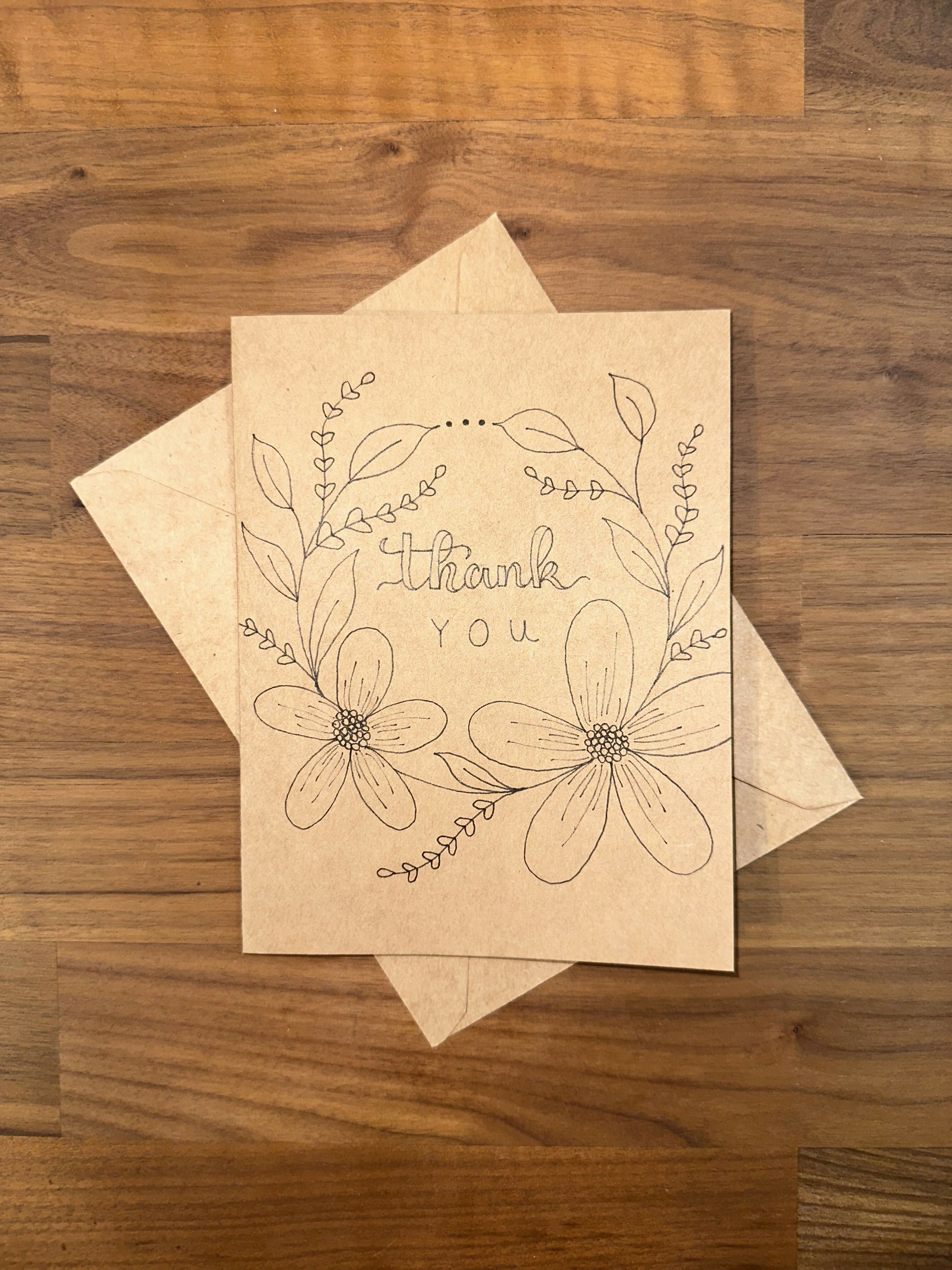 Beautiful hand drawn floral card for any occasion! Choose between three messages: "Thank You", "Happy Birthday", or "Congrats"